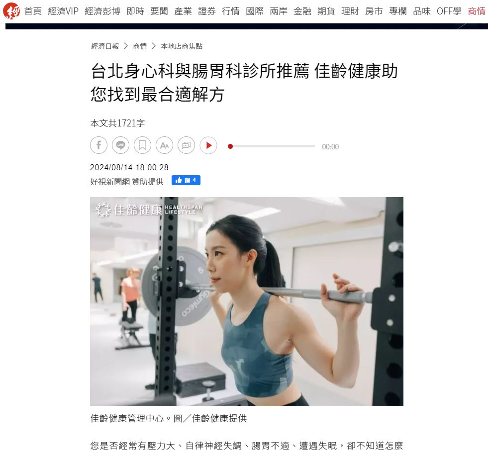 經濟日報 店商焦點》台北身心科與腸胃科診所推薦 佳齡健康助您找到最合適解方