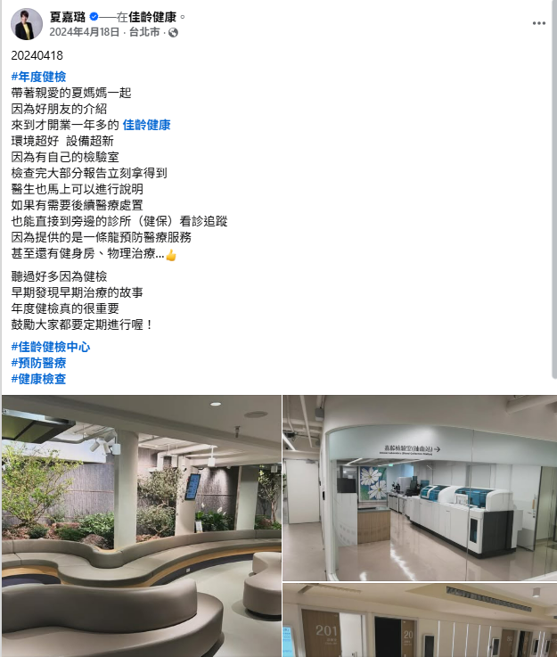 夏嘉璐主播分享帶母親一起至佳齡進行全身健檢心得
