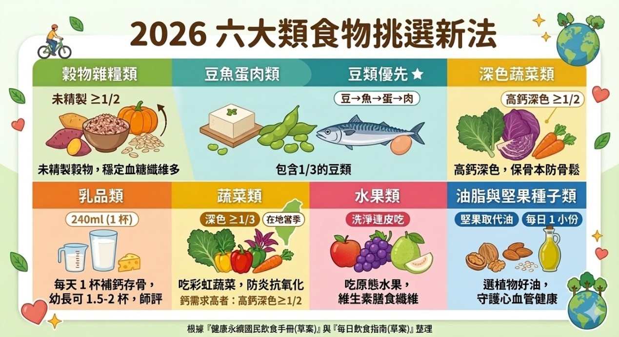 2026新版國健署每日飲食指南:吃出健康,還要吃出「永續力」!