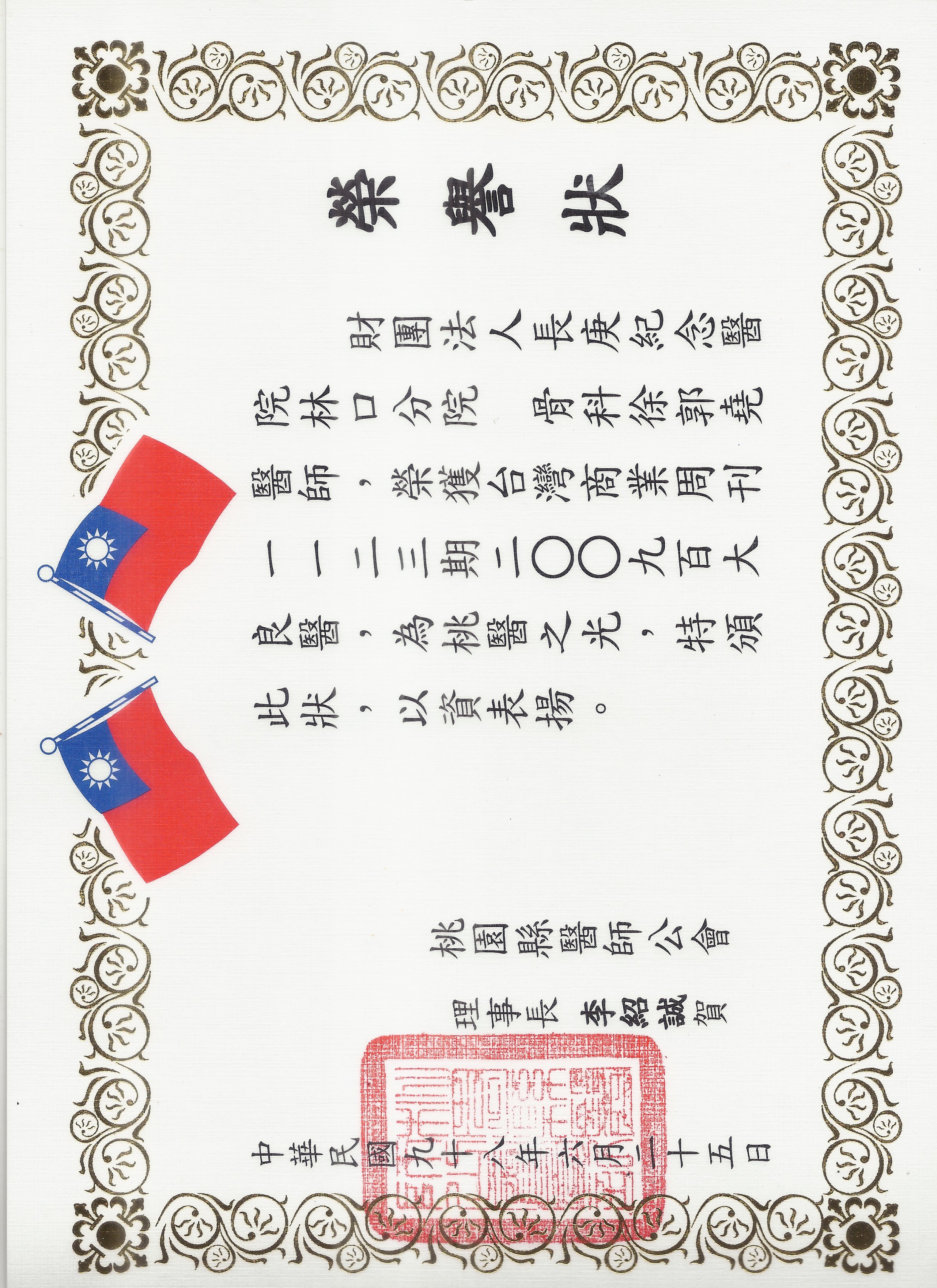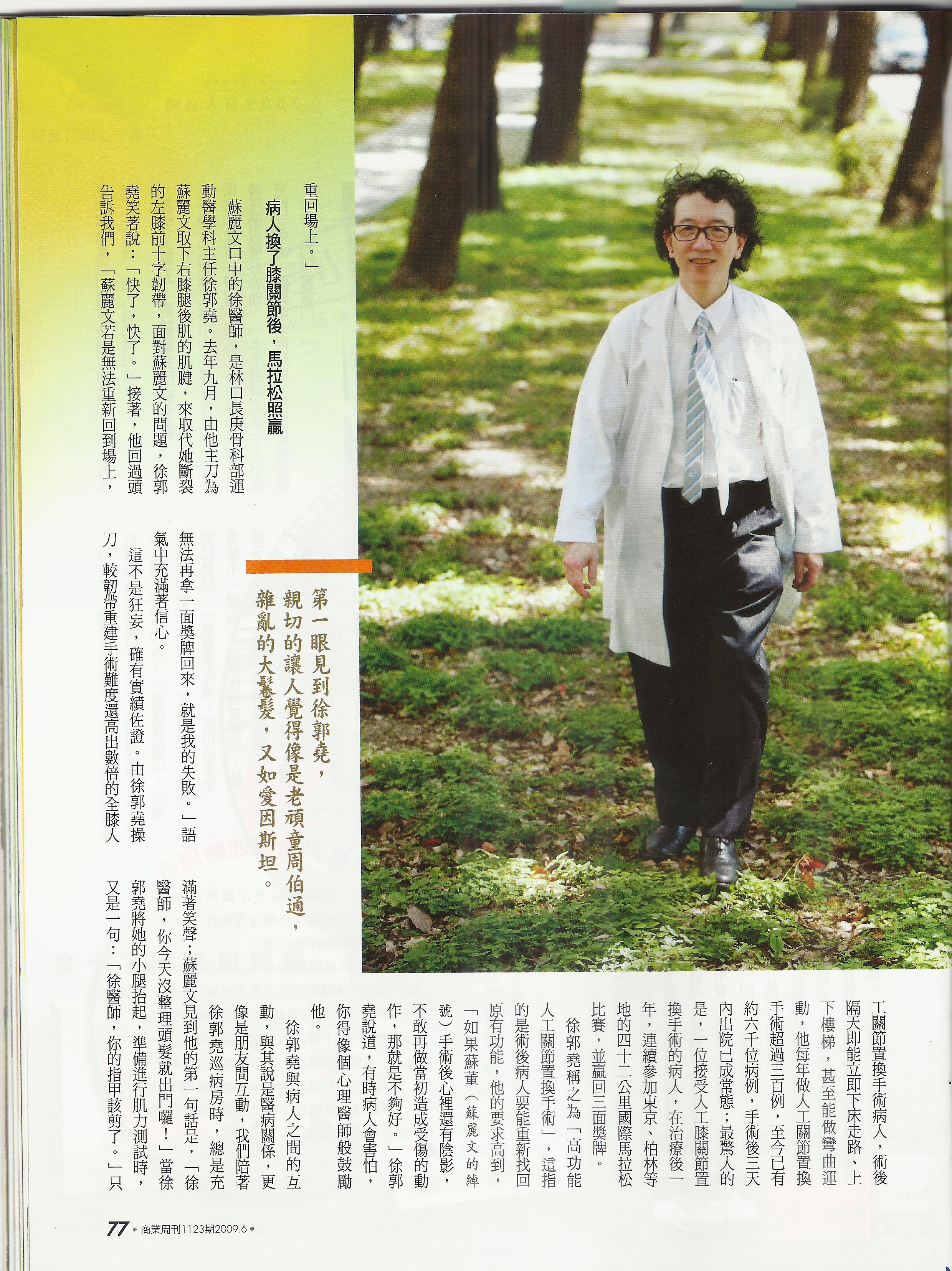 ▲徐郭堯醫師榮獲《商業週刊》第1123期「2009百大良醫」。