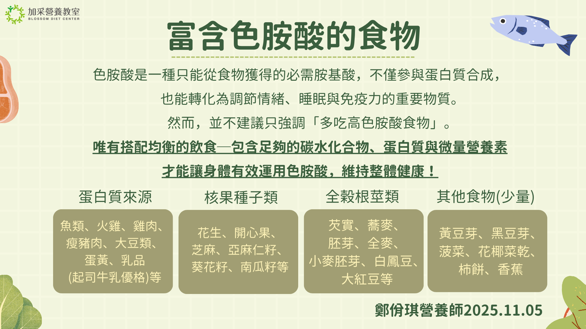 #色胺酸 #助眠食物 #改善情緒 #穩定睡眠 #天然助眠 #情緒調節 #健康飲食 #營養知識 #睡得好 #心情好
