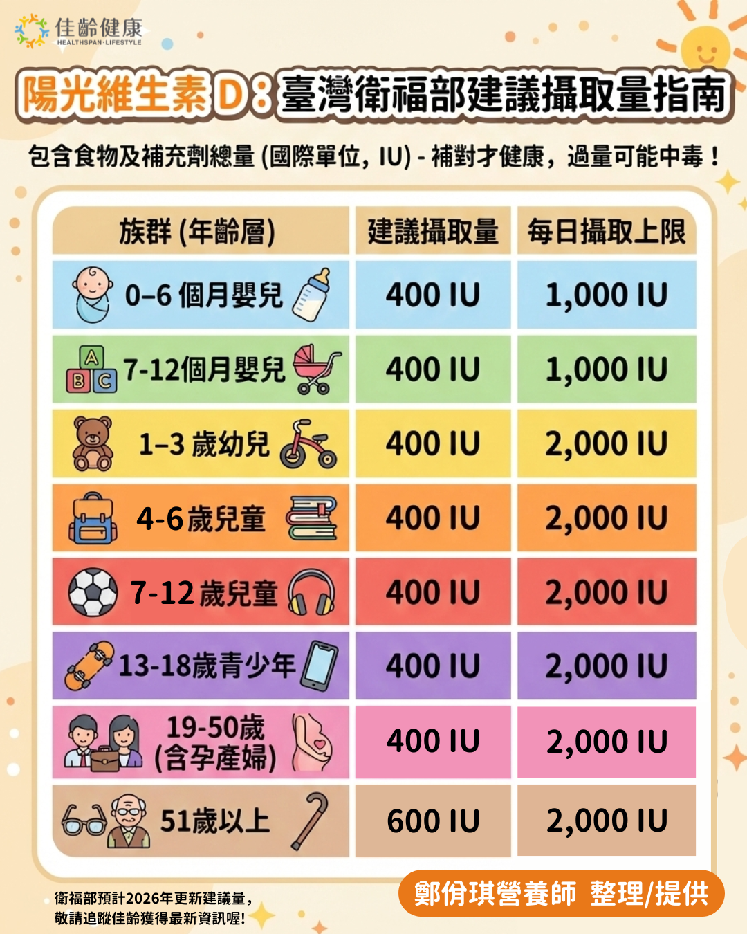 *2 美NIH建議 51-70歲是600國際單位,大於70歲者為800國際單位。